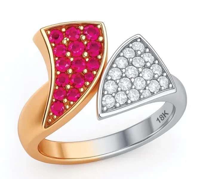 Louis Feraud Paris Bypass 18K Two Tone Pave Ruby and Diamond Ring