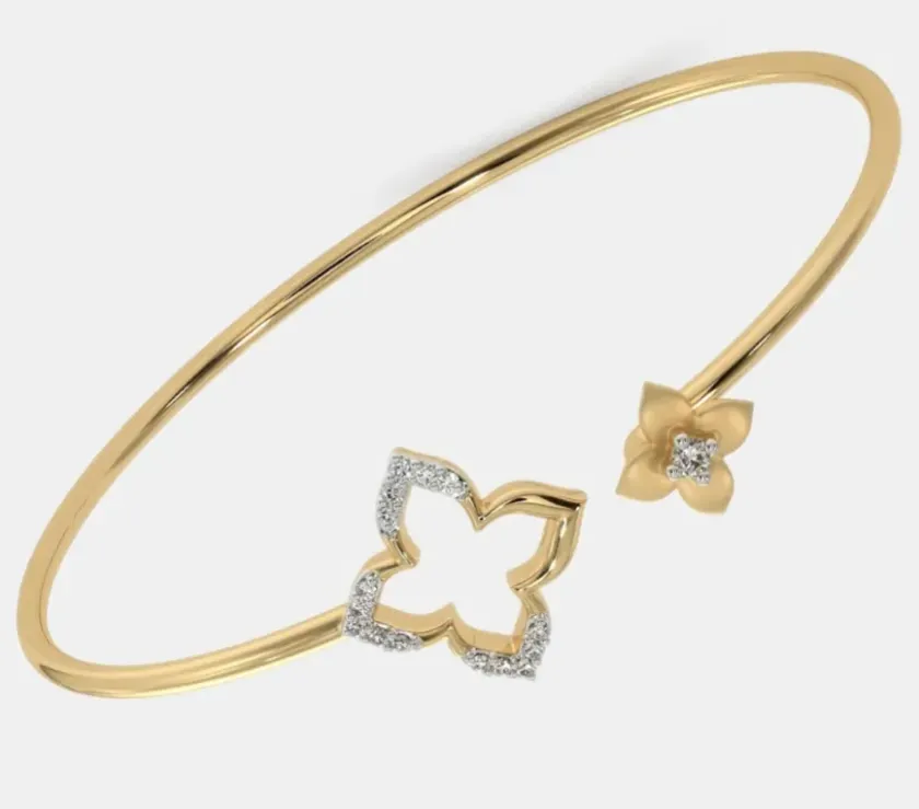 Diamond Bangle In 18Kt Yellow Gold (6.46 gram) with Diamonds (0.116 Ct)